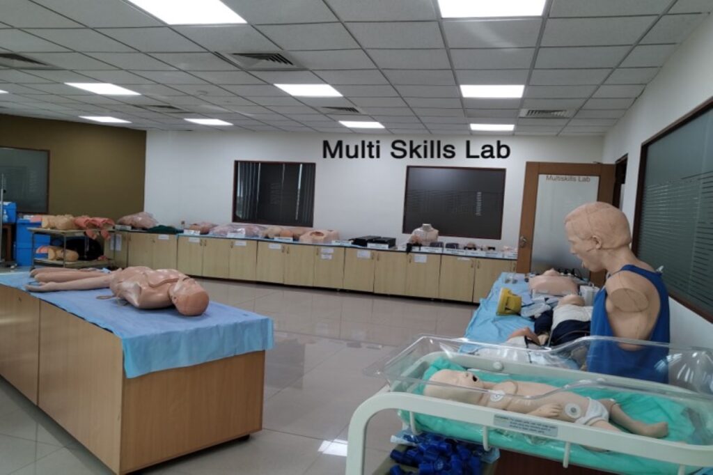 Skills lab, an abbreviation of skills laboratories, refers to specifically equipped practice rooms functioning as training facilities offering skill-based training for the practice of clinical skills prior to their real-life application. Skills Lab help to develop necessary clinical skills in medical undergraduate, post graduate students, paramedical and nursing students as per the competency requirement of the various courses. To develop resources, materials and course curricula required for various courses. Skills Lab allows learners to apply theoretical knowledge in a controlled environment, enhancing their understanding and proficiency. Skill development: Lab-based training focuses on skill development by allowing participants to practice tasks and techniques directly.